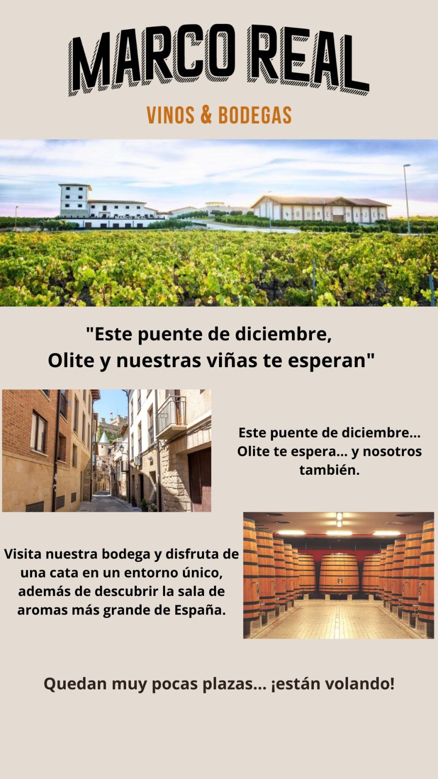 Reserva ya tu visita para el puente de diciembre en Bodegas Marco Real y disfruta de una cata en un entorno único, además de descubrir la sala de aromas más grande España.